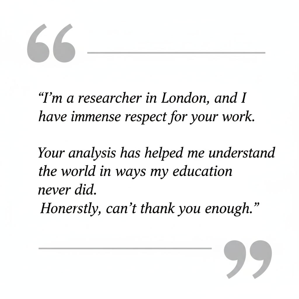 Yes. For those ready to go deeper, I offer access to live briefings, continued analysis, and an exclusive community of awakened thinkers, so you never walk the path alone.